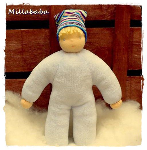Pár éve kezdtem foglalkozni babák készítésével, különböző méretben készítem őket, 10, 20, 30, és 40cm-es babákat. A baba a Waldorf-féle oktatás része, de azok is szeretni fogják akik a hagyományos nevelést részesítik előnyben. Puhasága, formája, kedves arca miatt szívesebben ölelnek magukhoz egy ilyen babát a gyermekek, mint egy műanya-got. Könnyen öltöztethető, rugalmassága, jó tartása miatt. Kifejezetten úgy tervezték, hogy a gyermekek magukra ismerhessenek benne, ennek szellemében alakult ki a teste.
